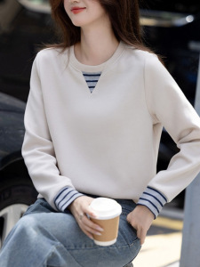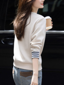 外贸时尚休闲上衣2025秋季慵懒宽松藏肉时髦罗纹撞色袖口拼接卫衣