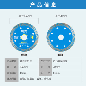 瓷砖切割片全瓷专用玻化砖陶瓷岩板大理石超薄干切锯片不崩边神器
