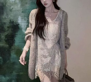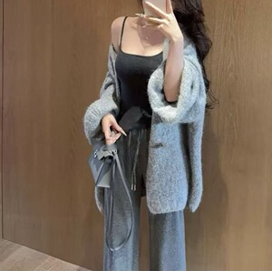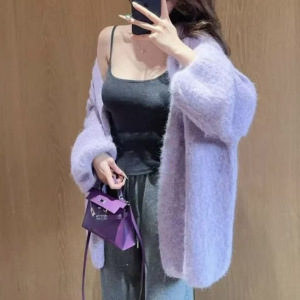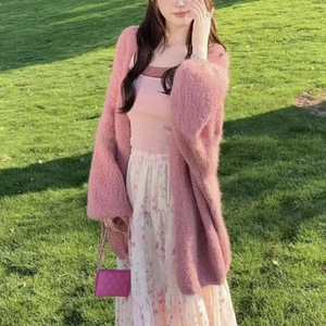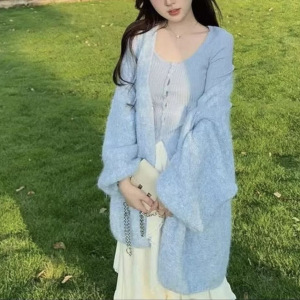 韩系慵懒风大码毛衣女秋冬新款外贸跨境宽松灯笼袖针织开衫外套女