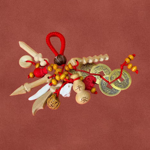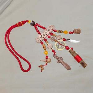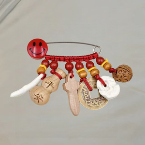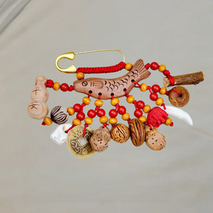 婴儿宝宝桃木安全别针挂件桃木猪惊骨狗牙红绳编制挂件婴儿佩戴