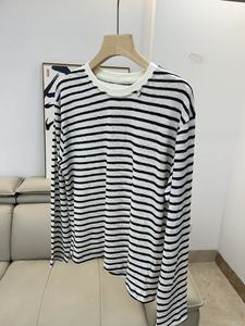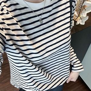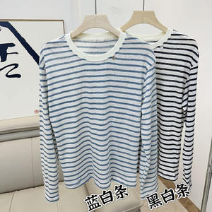 经典复古简约条纹T恤女士百搭显瘦慵懒风圆领长袖打底上衣