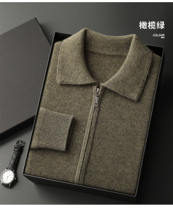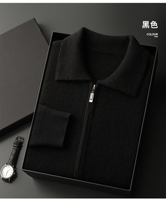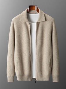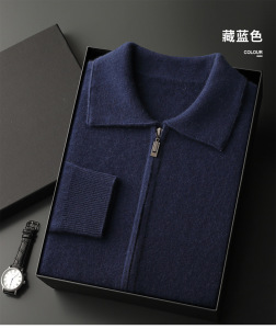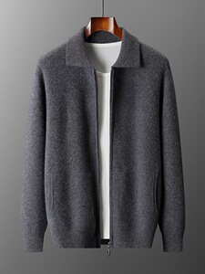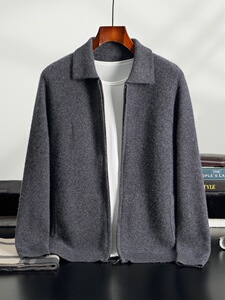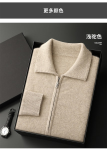 四平加厚羊绒POLO开衫男士秋冬新款纯色保暖针织外套河北工厂批发