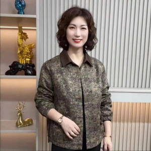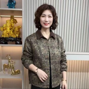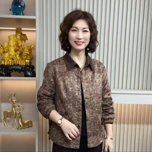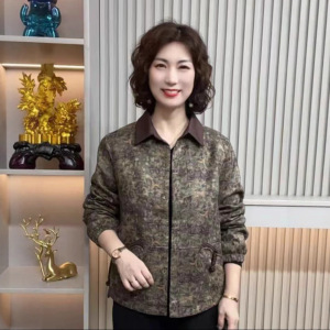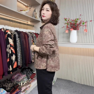 时尚减龄短外套女士早秋新款中年妈妈装宽松休闲撞色印花长袖上衣