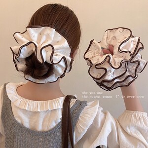 韩系温柔小清新甜美少女碎花黑色木耳边大肠发圈森系文艺新款发饰