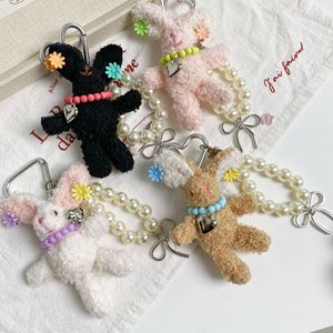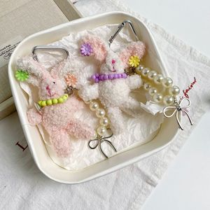 珍珠发夹长耳兔 凌乱小狗毛绒玩偶兔子手机链可爱公仔包包挂件