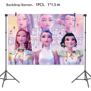 KPOP猎魔女团生日派对装饰用品一次性纸盘纸杯纸巾桌布背景布拉旗