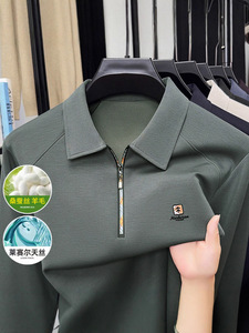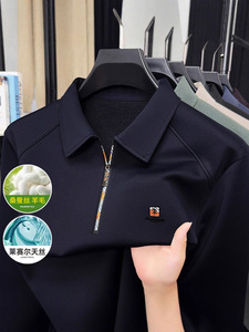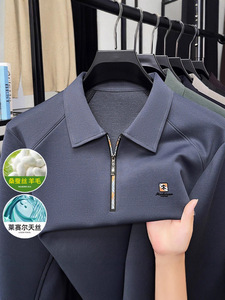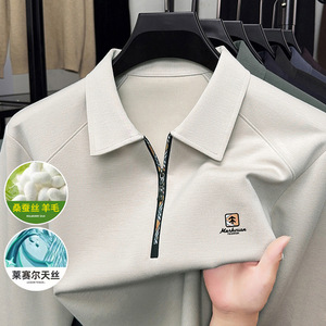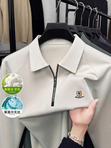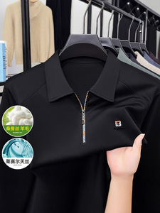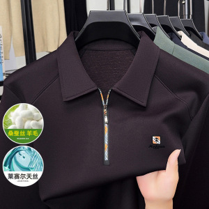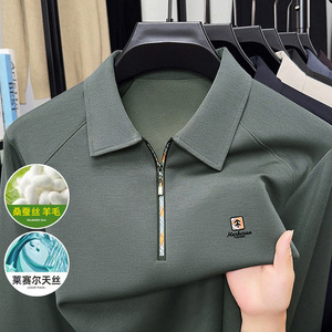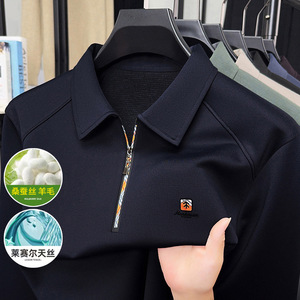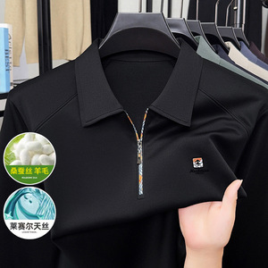 高档男士桑蚕丝POLO衫2025春秋季新款无痕长袖T恤打底衫男上衣