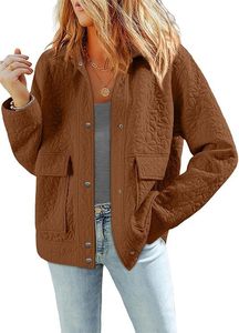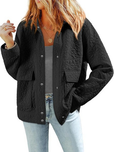 2025欧美跨境女士休闲长袖翻领提花外套时尚纽扣式露肩外套带口袋