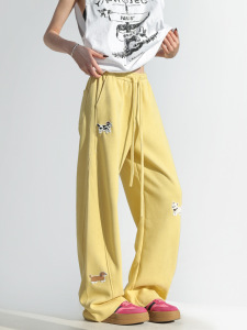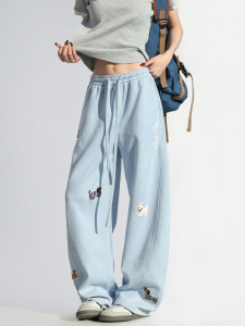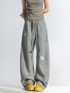 「CHANT2nd」趣味小狗贴布绣阔腿裤女直筒裤垂感感休闲裤卫裤