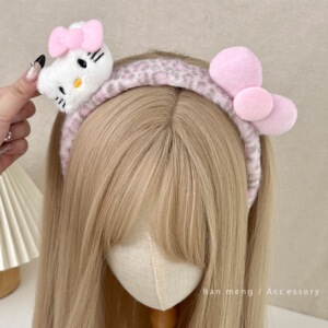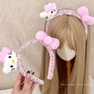 超可爱卡通粉色豹纹KT发箍少女心毛绒洗脸化妆发卡高颅顶头饰发饰