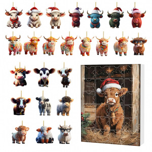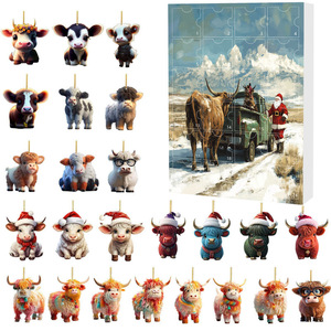 跨境圣诞盲盒 农庄牦牛图案装饰礼盒 圣诞来临盲盒 圣诞树挂饰