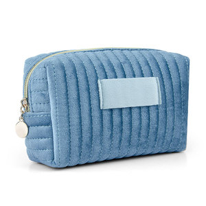 跨境热销高颜值条纹洗漱包秋冬天鹅绒手拿包绗缝绒布化妆包便携