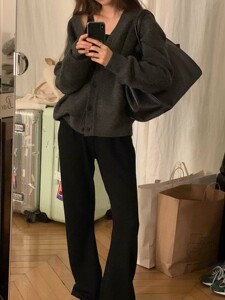 25缦恩韩国东大门秋冬新款oun*e松紧腰高腰宽松微喇休闲裤长裤女