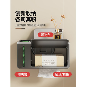 免打孔吸盘纸巾盒卫生间隐形厕纸盒多功能纸抽盒壁挂式浴室置物架