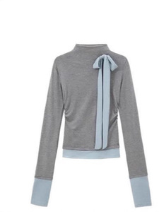 蝴蝶结假两件半高领打底衫女秋冬2025新款设计感内搭修身长袖上衣