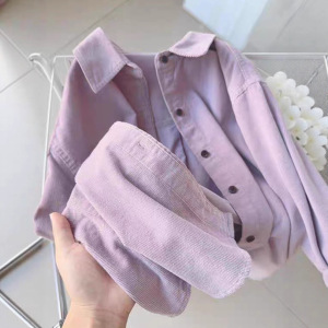 气质复古灯芯绒衬衫女法式叠穿内搭衬衣外套宽松休闲遮肉长袖上衣