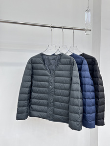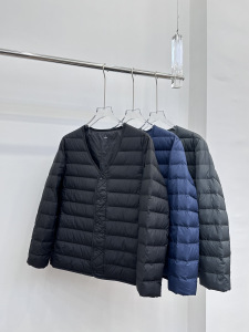 日系男士轻薄羽绒服内胆长袖V领内穿打底保暖纯色白鸭绒冬装外套