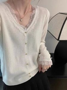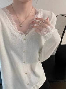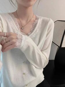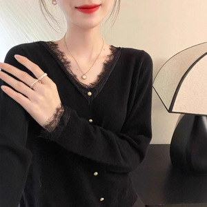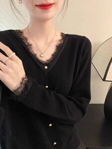 高级感超好看蕾丝V领内搭针织打底衫毛衣秋季女装超好看慵懒上衣