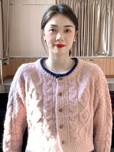 粉色毛衣女秋季2025新款韩系温柔甜美慵懒小个子外套针织衫开衫