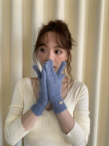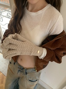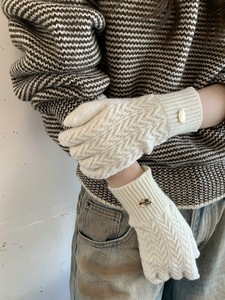 日韩系纯色手套女冬季毛线针织八字麻花秋冬骑车触屏漏手指手套