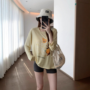 趣味减龄 天丝亚麻混纺轻盈柔和垂顺宽松版圆领卡通印花T恤