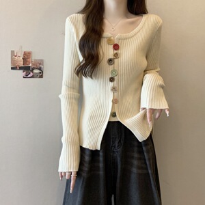 设计感彩色纽扣圆领针织衫女秋冬2025新款温柔风修身显瘦毛衣