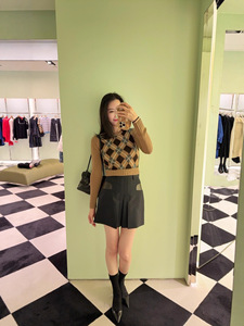 2025早秋新款Pra南油工厂复古学院风优雅随性拼色菱格短款针织衫