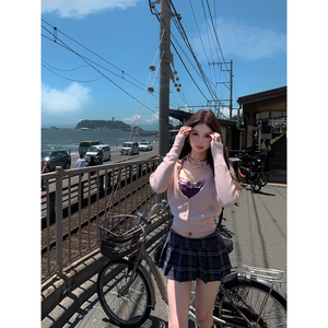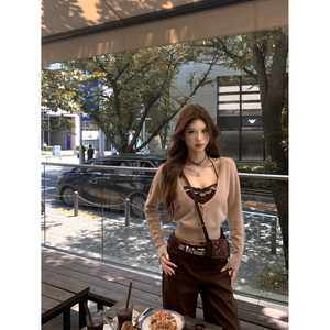 秋季针织开衫毛衣外套女重蕾丝吊带背心带胸垫秋