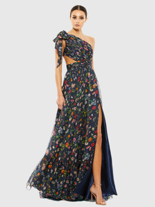 2025欧美女装 独立站 里布+网纱数码印花 斜肩不规则长裙连衣裙