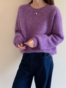100羊毛拉毛羊毛衫女圆领蓬松软糯厚款毛衣慵懒宽松针织打底衫