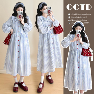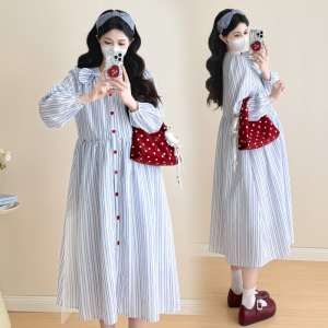 2025秋冬新款孕妇装蝴蝶结条纹小清新宽松显瘦孕妇连衣裙