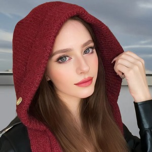 2025年冬季新款纯色针织帽子女围巾一体巴拉克拉法帽防寒加厚保暖