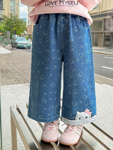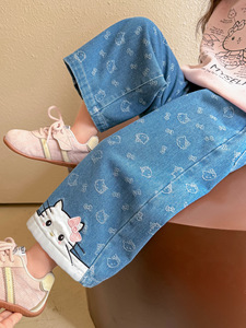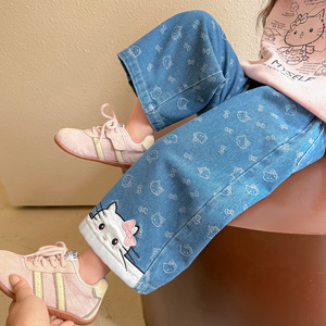 女童洋气牛仔裤春秋装2025新款儿童韩版小女孩满印可爱直筒长裤子