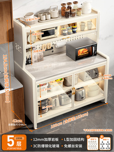 免安装厨房岩板置物架多功能餐边碗柜落地多层微波炉收纳储物橱柜