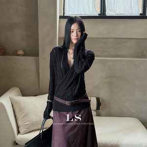 【LS新品牌】黑标极简大牌 早秋上新设计感小众v领针织上衣58007#