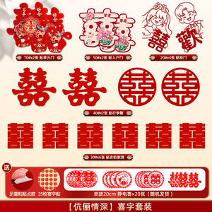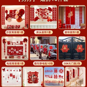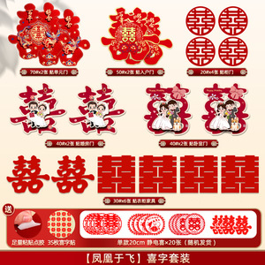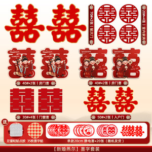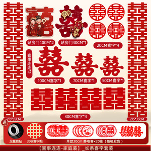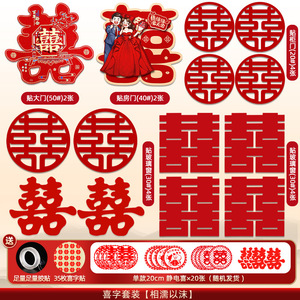 喜字贴结婚婚房布置装饰囍字贴纸红双喜贴门套装婚庆用品全套