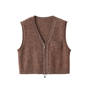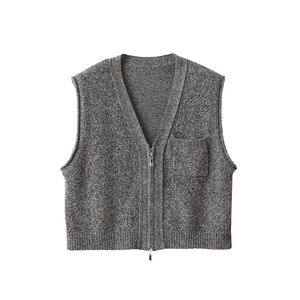 【美式乡村】复古休闲AB花式纱全羊毛双拉链V领马甲秋冬无袖背心