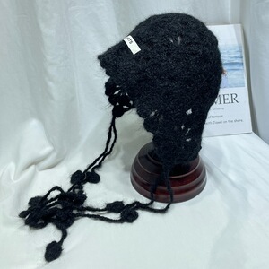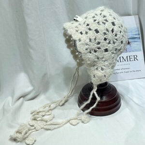 日系气质甜美手工钩花包头帽女秋冬时尚百搭针织流苏套头帽护耳帽
