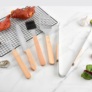 厂家直销不锈钢烧烤工具5件套烧烤铲叉夹刷刀木手柄烧烤套装BBQ户