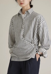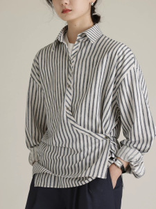 2025AW‘扭扭衬衫’复古色织条纹斜襟设计感小众衬衫