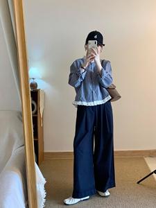 入秋搭配一整套大码胖mm盐系轻熟高级感条纹长袖衬衫休闲裤套装女