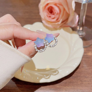 少女甜美五角星渐变耳钉小众秋冬精致珍珠耳环轻奢高级感简约耳饰