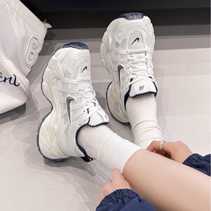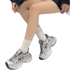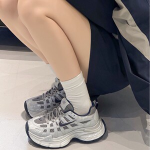 超火2025年秋季新款真皮百搭厚底增高透气休闲鞋运动鞋老爹鞋女