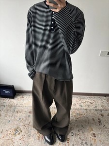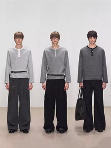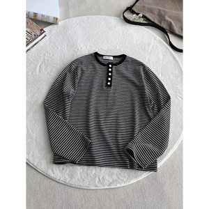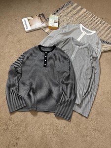 条纹亨利领长袖T恤 2025秋季正肩通勤白色男款休闲基础复古打底衫