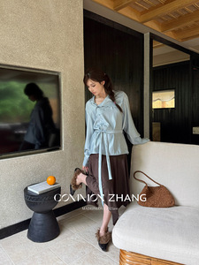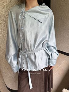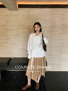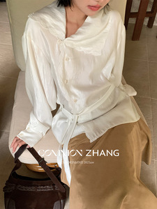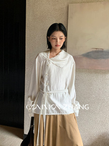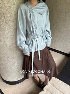CZ ZHANG秋小清新花边翻领侧开衫衬衫女文艺复古休闲小衫 B33666