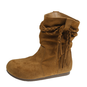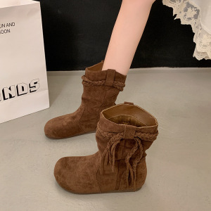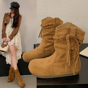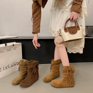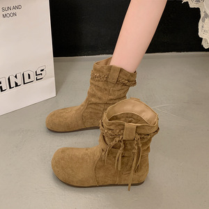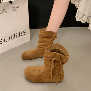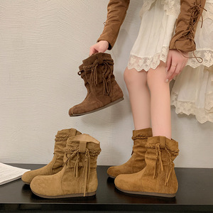 法式平底圆头勃肯短靴子女2025新款秋季堆堆靴西部牛仔堆堆马丁靴