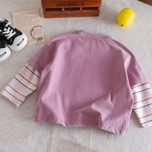 儿童长袖T恤2025春秋新款男童假两件上衣宝宝打底衫韩版女童童装