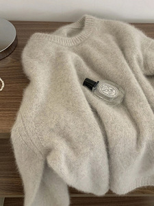 软糯仿浣熊绒圆领毛衣女冬季厚慵懒风奶fufu内搭针织衫上衣