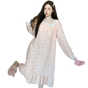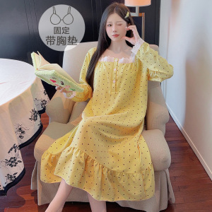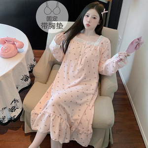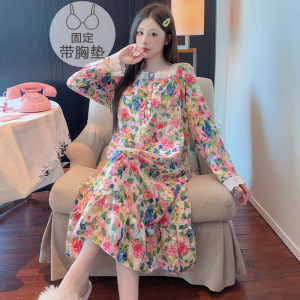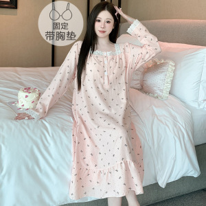 胖mm睡衣女春秋季新款带胸垫一体云朵棉长袖睡裙公主风大码家居服