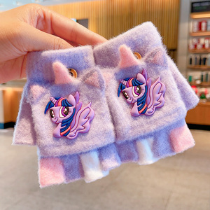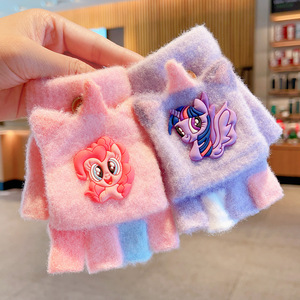 小马宝莉正版儿童手套女童翻盖分指套半指套学生秋冬季写字半指套